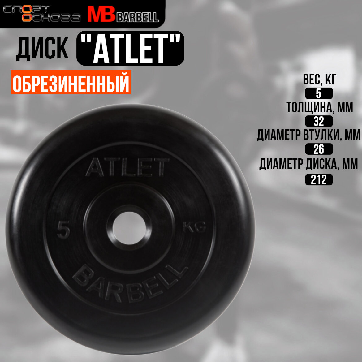 Диск MB Barbell «Атлет», 26 мм, 5 кг (MB-AtletB26-5), для штанги информация: