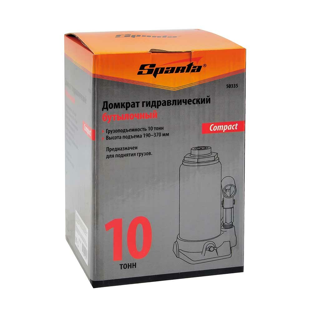 Домкрат гидравлический бутылочный, 10 т, h подъема 190-370 мм, Compact, SPARTA 50335