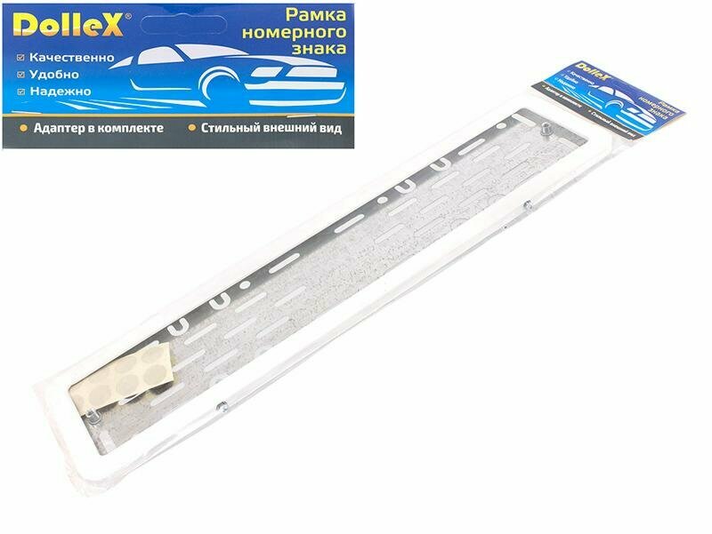 DolleX Рамка номерного знака металлическая, с металл. адаптером в сб., белая SPL-20 информация: