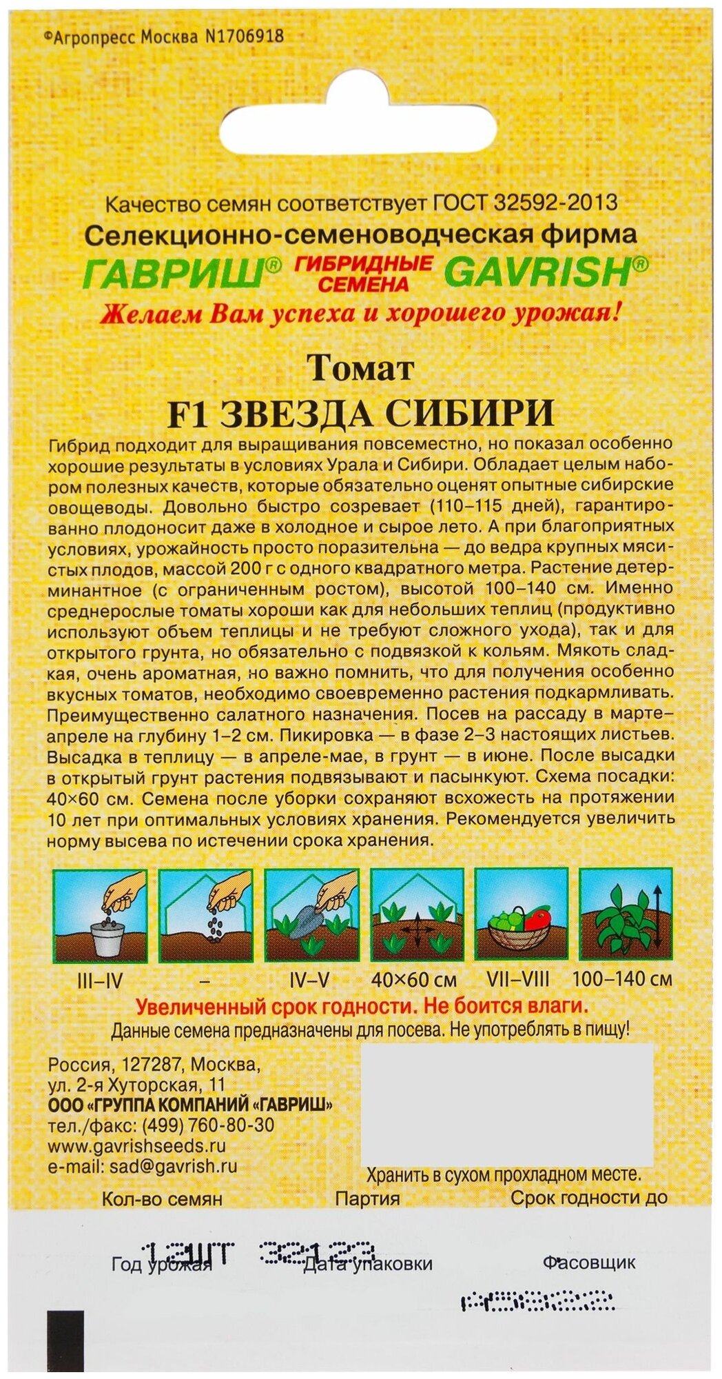 Томат Звезда Сибири F1 12шт Дет Ср (Гавриш) автор - 10 пачек семян информация:
