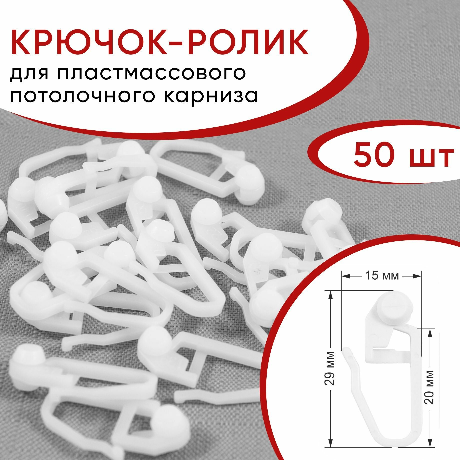 Крючок-ролик для пластмассового карниза (20 шт.)