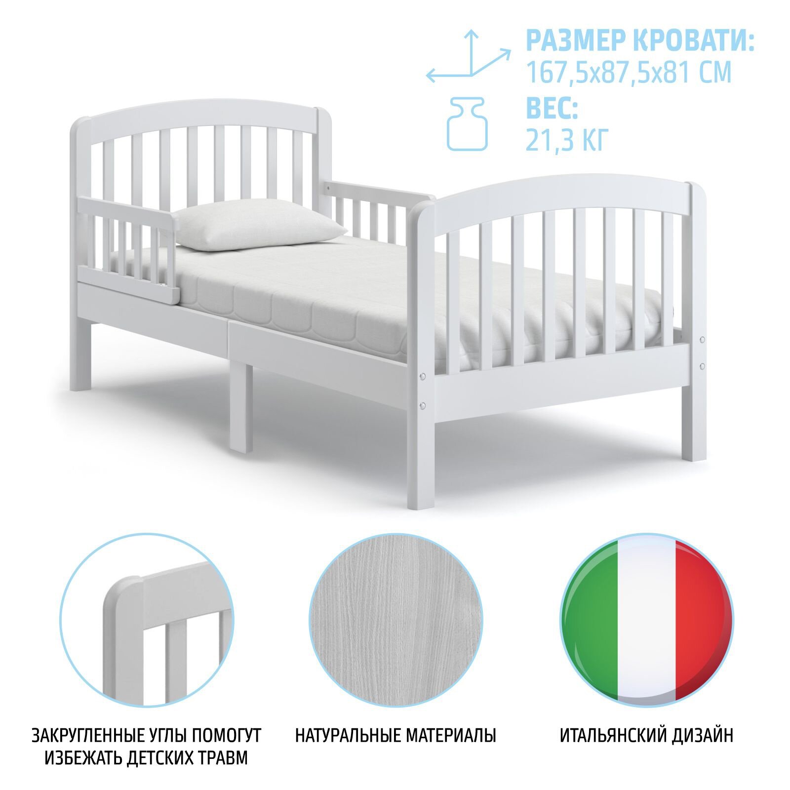 Кровать подростковая Nuovita Incanto 160х80 (Bianco/Белый) информация: