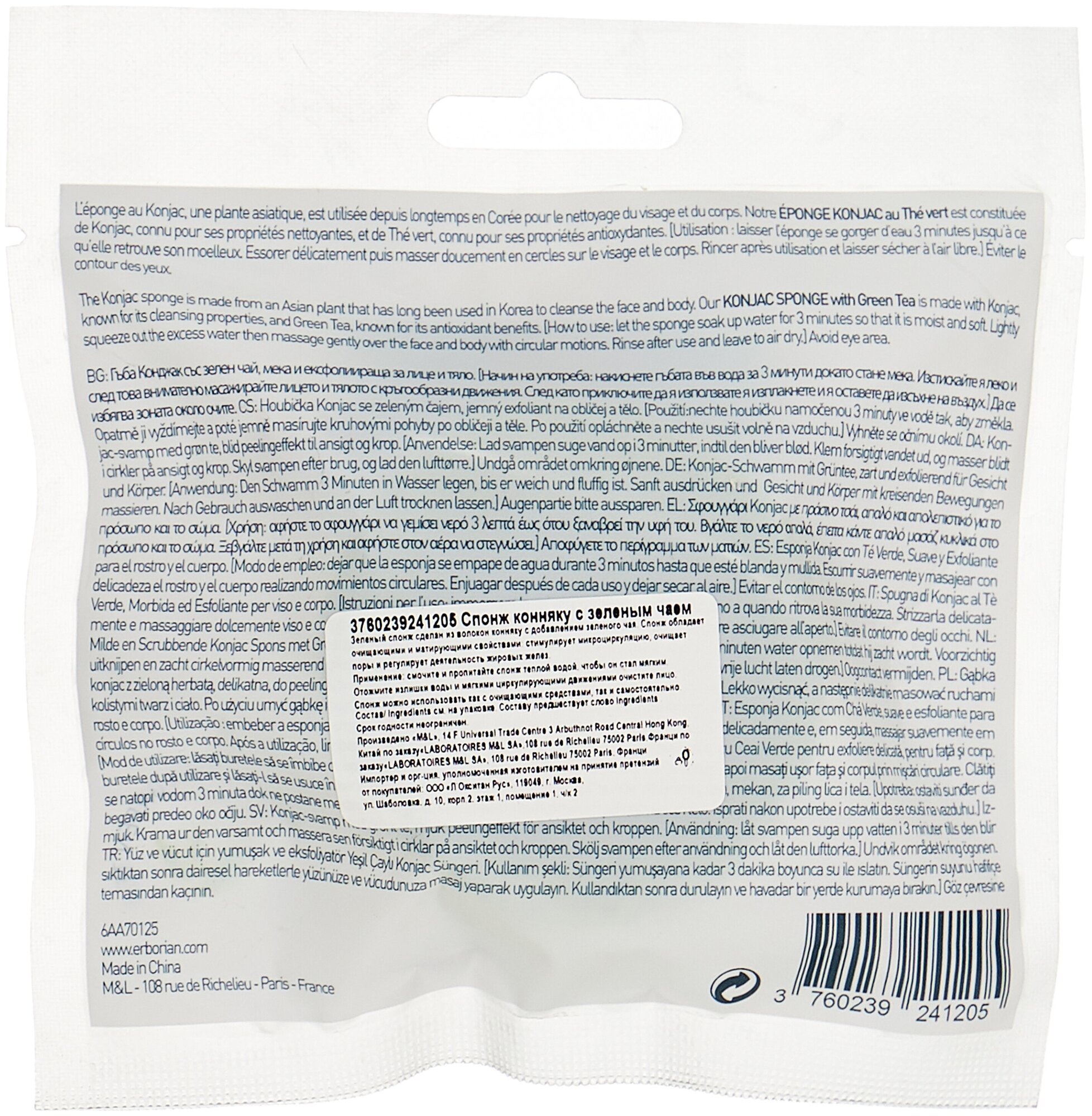 Спонж очищающий с зеленым чаем GREEN TEA KONJAC SPONGE 1 шт информация: