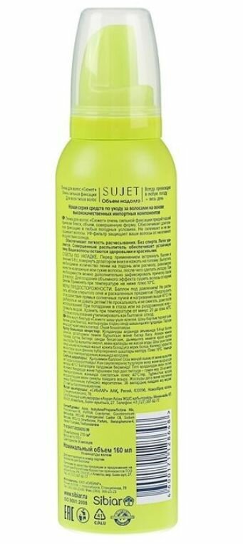 Сибиар Пенка для укладки волос Sujet UV-filter очень сильная фиксация 160 мл