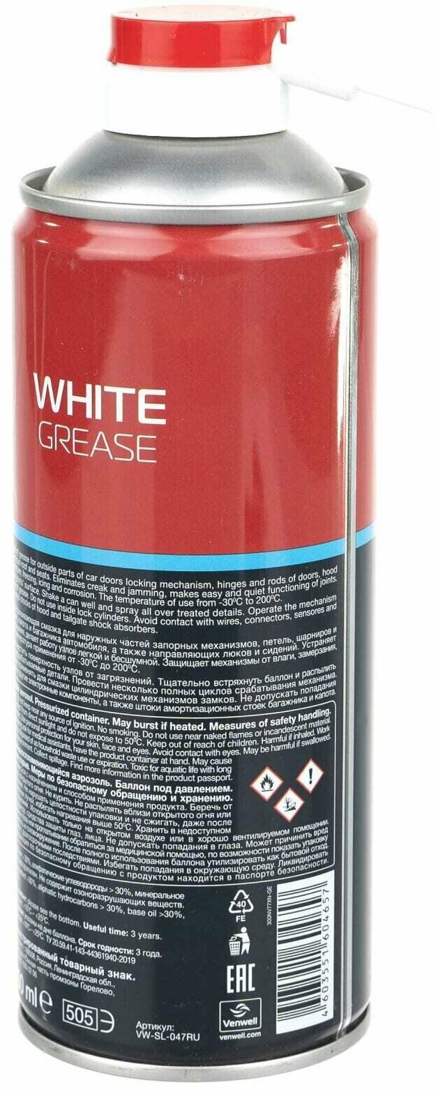 Смазка аэрозоль VENWELL WHITE GREASE 400 мл VW-SL-047RU, VWSL047RU VENWELL VW-SL-047RU