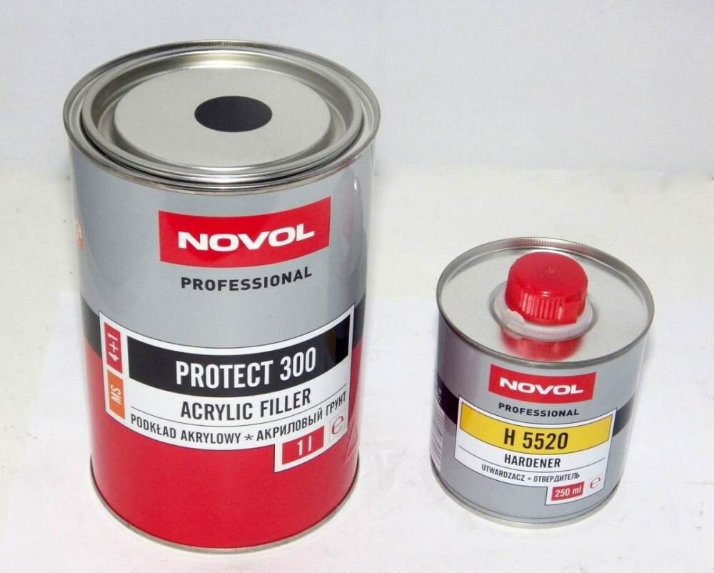 Грунт акриловый NOVOL PROTECT 300 MS серый 1000мл + 250мл отвердитель H5520 (комплект)