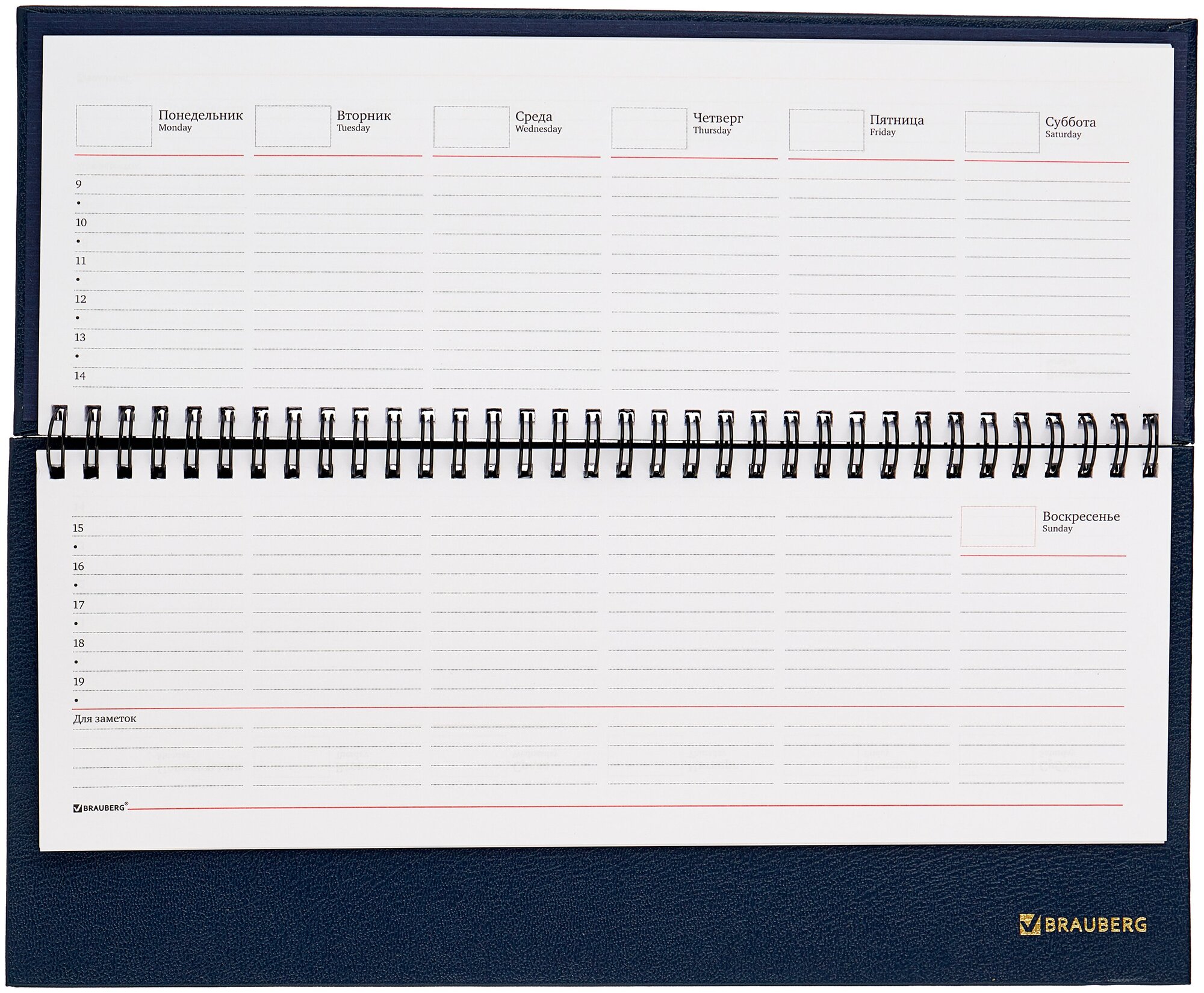 Планинг (ежедневник-планер), записная книжка, блокнот недатированный настольный горизонтальный (305x140 мм) Brauberg балакрон, 60 л., синий, 111698