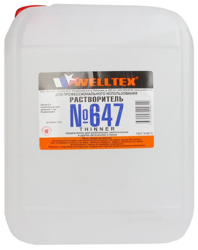 WELLTEX РС6475 Растворитель 647 5л WELLTEX информация:
