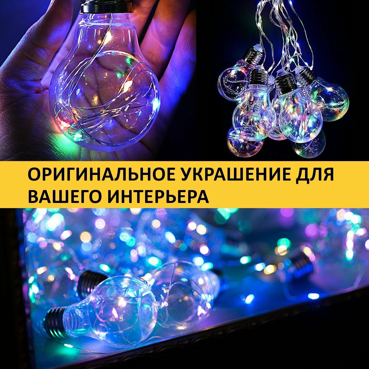 Отзывы на Гирлянда светодиодная "Ретро-лампы" 3м 100LED мультиколор 4Вт IP20 Neon-Night 303-079