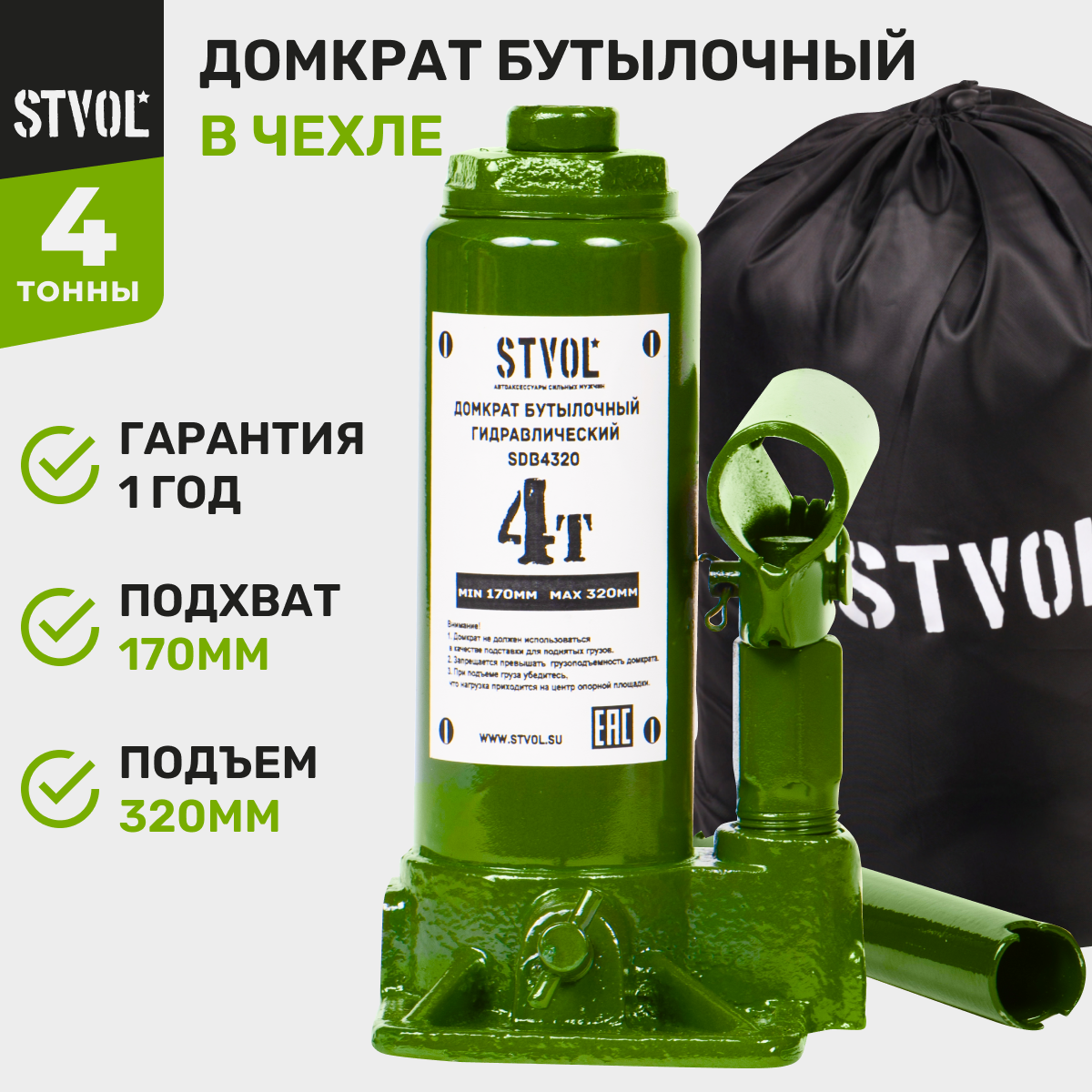 Домкрат Бутылочный 4Т (170-320 Мм) Stvol Чехол STVOL арт. sdb4320 2 223 ₽