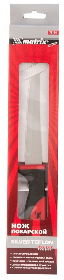 Отзывы на Нож поварской Matrix SILVER TEFLON fillet 160 мм, тефлон. покрытие полотна, двухк.рук. 79144
