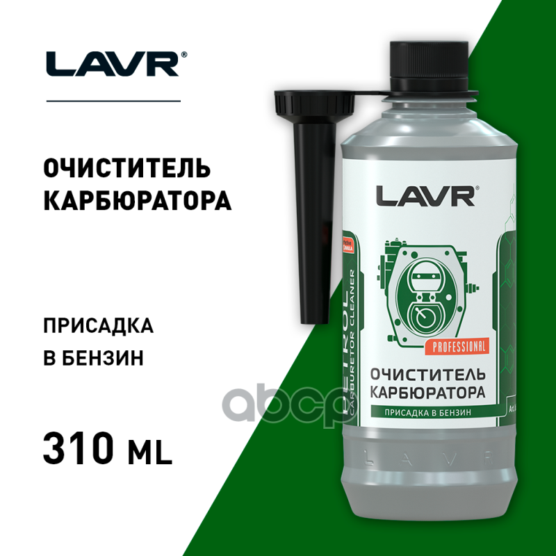 Очиститель карбюратора lavr 0,31л присадка в бензин (на 40-60л) с насадкой lavr ln2108