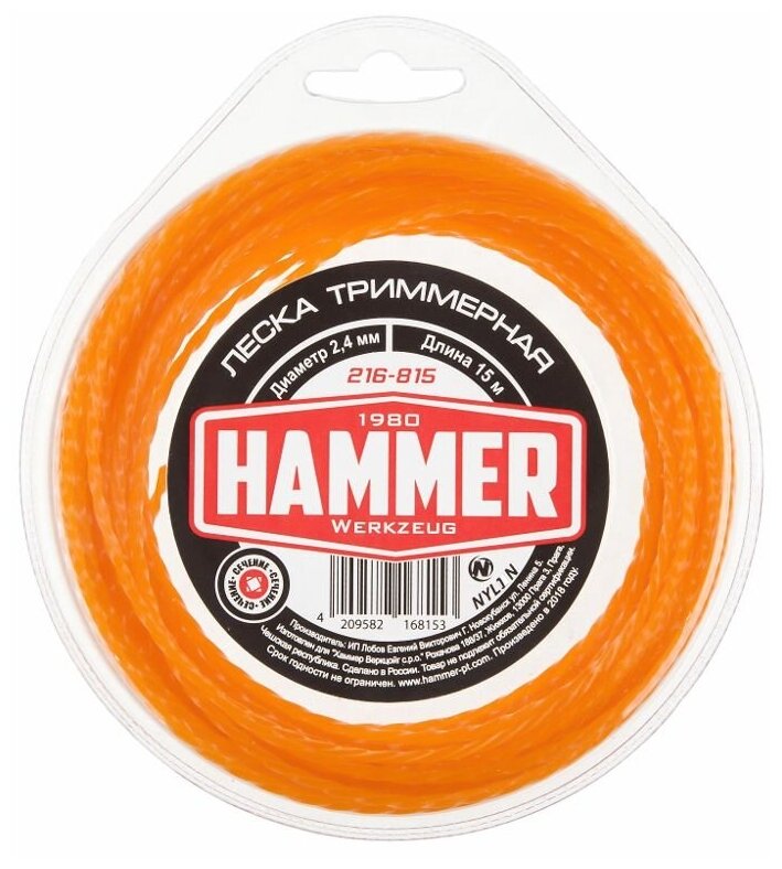 Отзывы на Леска триммерная Hammer 216-815 2.4мм 15м витой квадрат в блистере