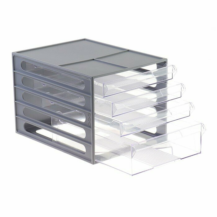 10 цен на Лоток для бумаг Бокс с выдвижными лотками Стамм, серый 4 прозрачных лотка ВЛ53