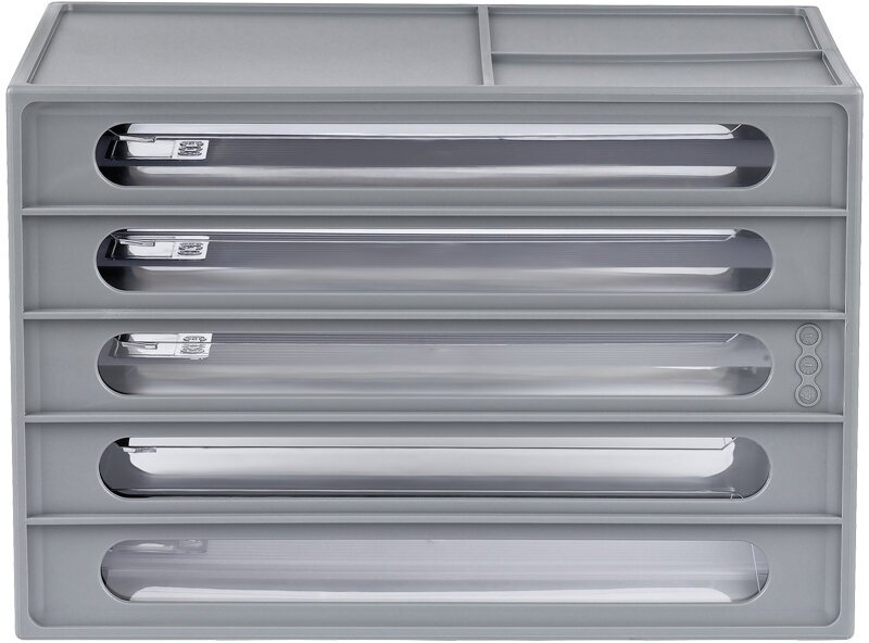 Лоток для бумаг Бокс с выдвижными лотками Стамм, серый 4 прозрачных лотка ВЛ53 информация: