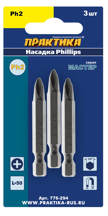 Бита Практика "Мастер" PH-2 х 50мм (3шт), блистер, 776-294 информация: