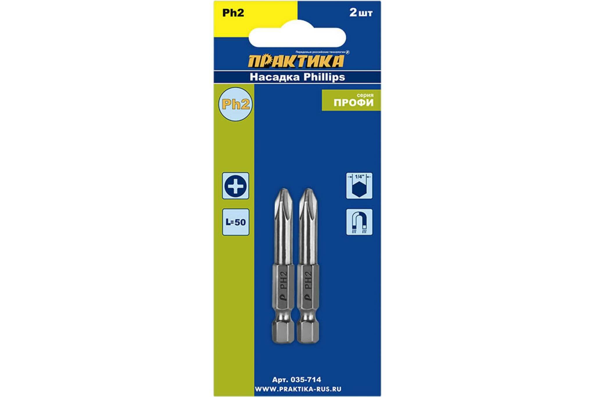 Бита отверточная ПРАКТИКА "Профи" PH-2 х 50мм (2шт), блистер (035-714)