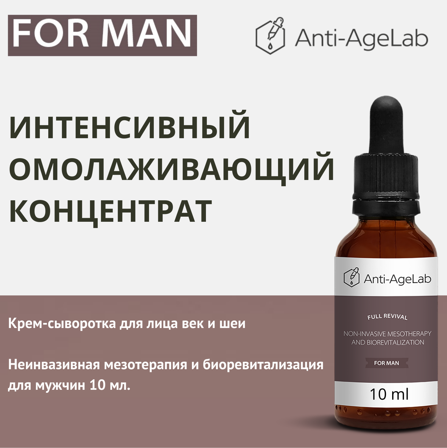 От морщин крем-сыворотка неинвазивная мезотерапия и биоревитализация для мужчин, для лица, области вокруг глаз и шеи 10 мл.. 3 545 ₽