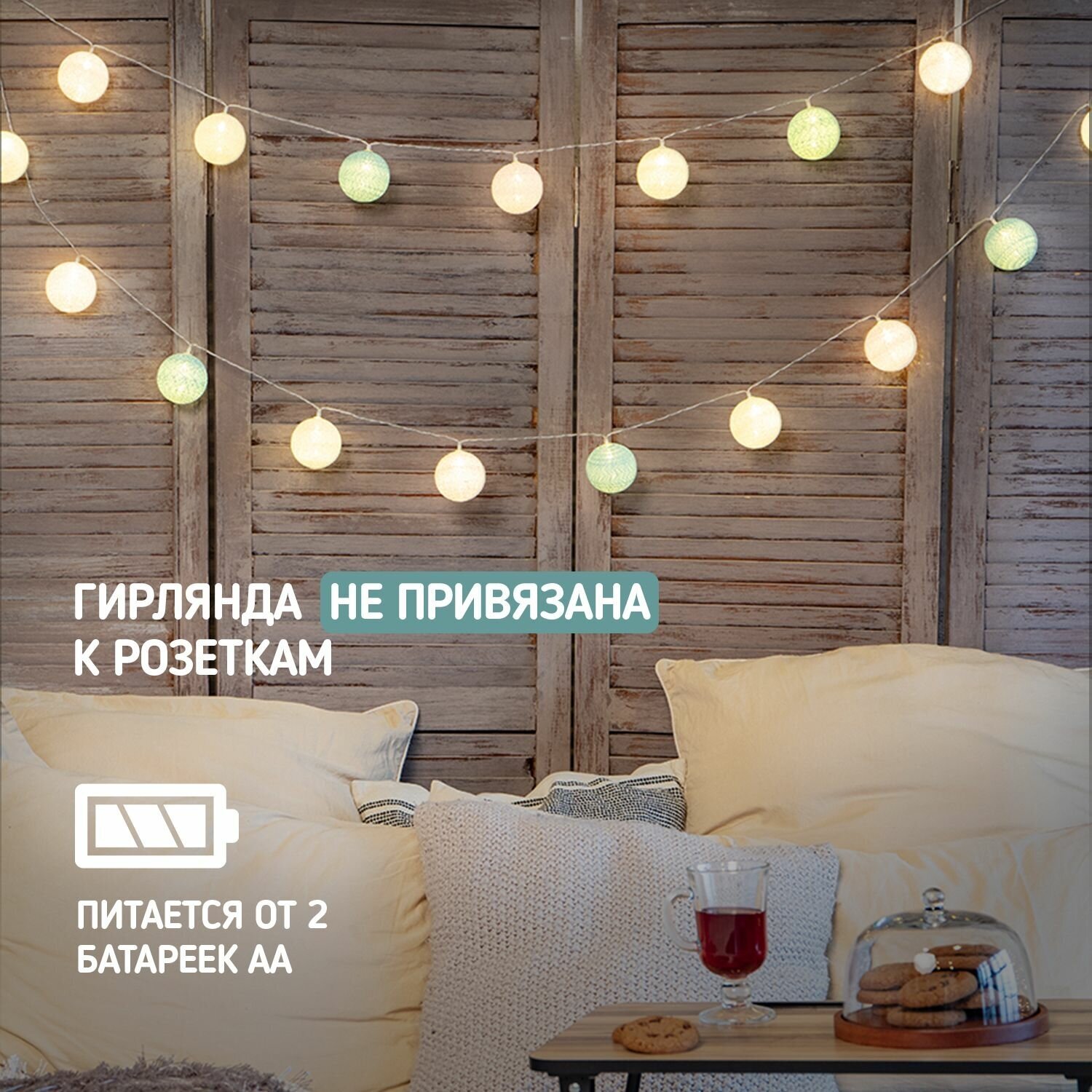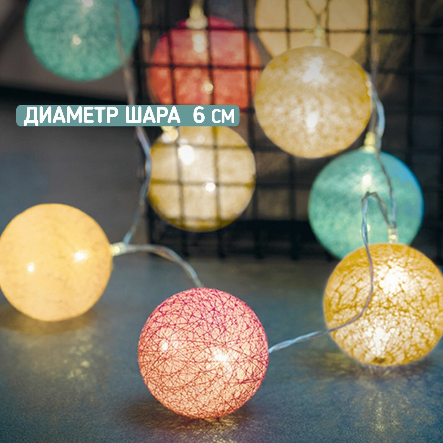Светодиодная гирлянда NEON-NIGHT "Вельвет" 3.5 м, 20 разноцветных шаров тепло-белого свечения, прозрачный провод (питание от батареек) 670 ₽