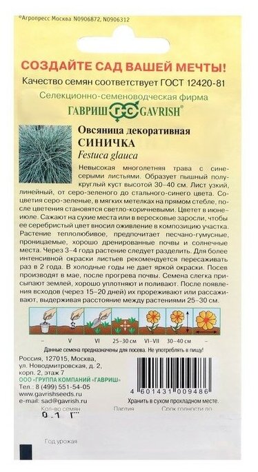 В заказе: 10 пачек семян / Овсяница Синичка ледниковая 0,1г Мн 40см (Гавриш) Альпийская горка информация:
