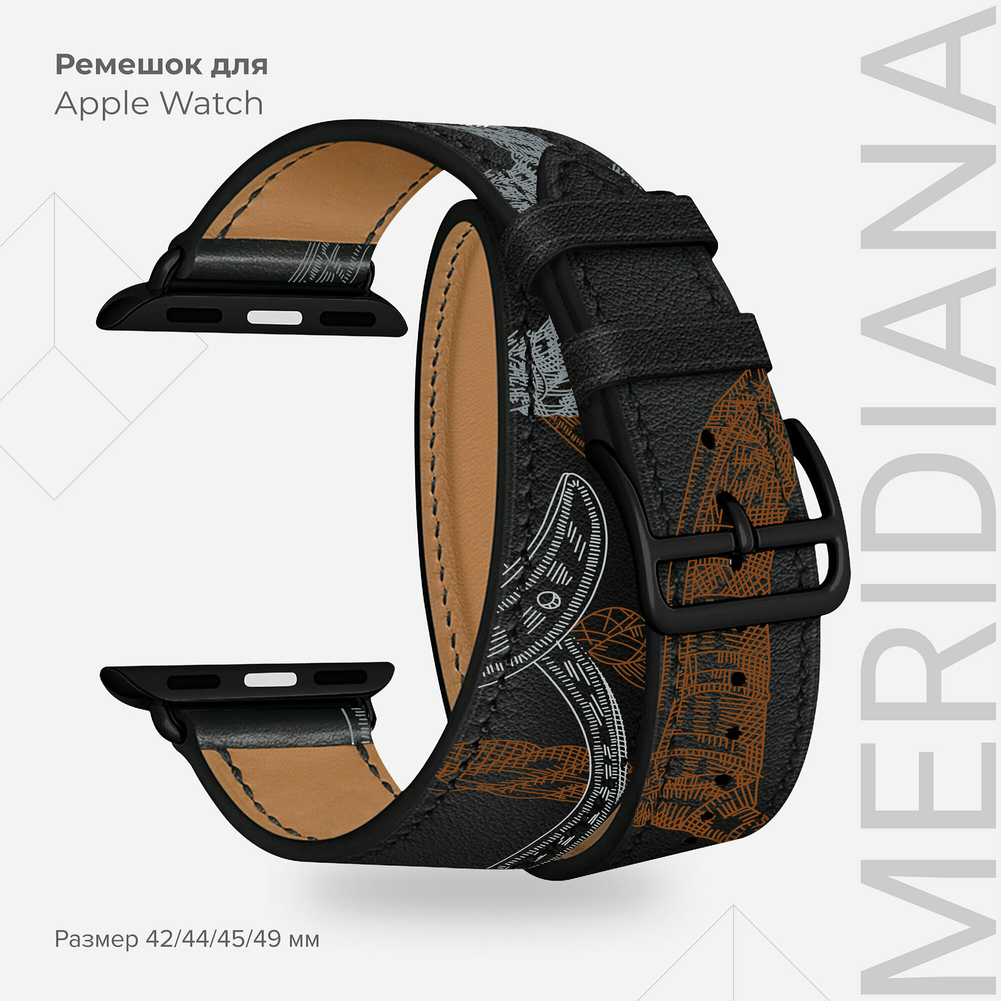 Кожаный ремешок в два оборота для Apple Watch 42/44/45 mm LYAMBDA MERIDIANA LWA-01-44-BK Black
