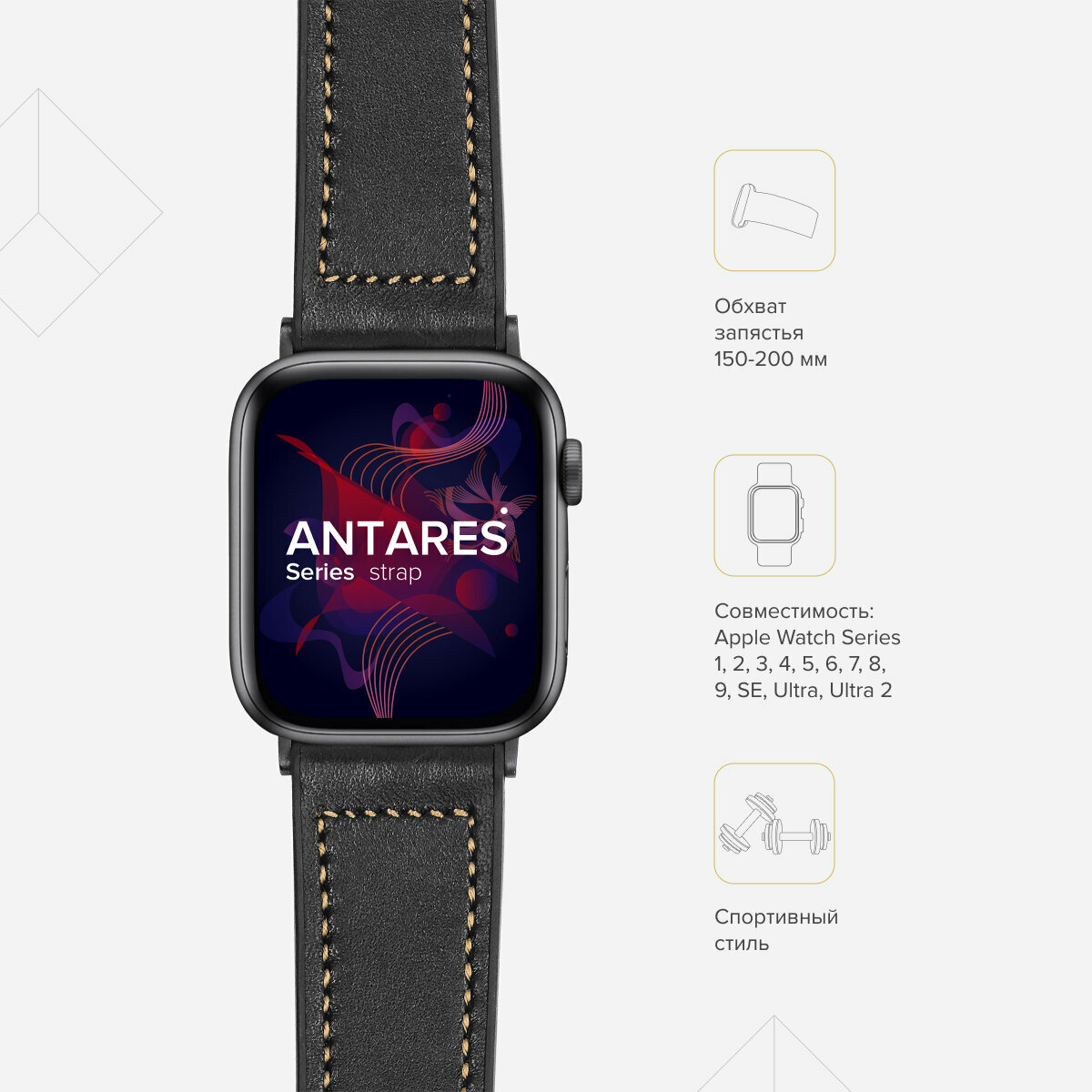 Отзывы на Комбинированный ремешок кожа/силикон для Apple Watch 42/44/45/49 mm LYAMBDA ANTARES LWA-10-44-BK Black