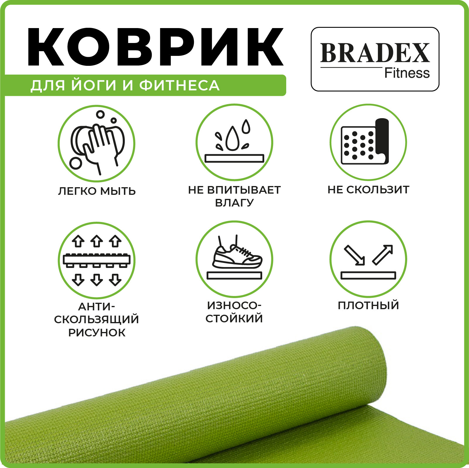 Коврик для йоги и фитнеса с рисунком Грин, Bradex (товары для спорта и отдыха, 173 х 61 х 0,4, SF 0404) 1 610 ₽