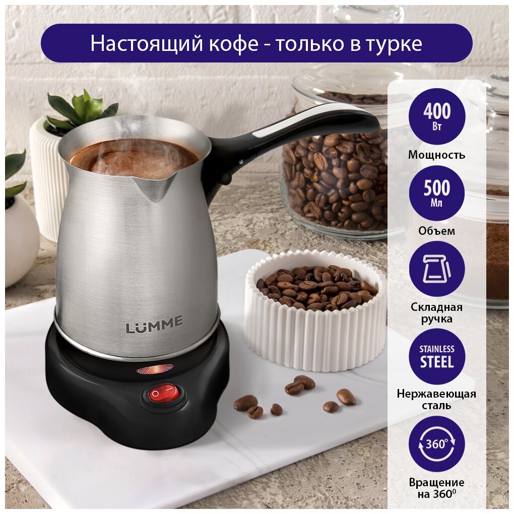 Отзывы на Турка для кофе электрическая Люмме LU-1631 с ручкой из термостойкого пластика и металлическим корпусом, цвет черный жемчуг, 500мл, 400Вт / техника
