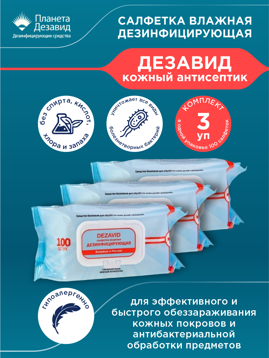 Салфетки дезинфицирующие Дезавид 100 штук флоу пак х 3 шт. информация: