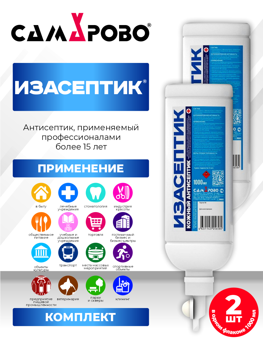 Антисептическое средство Изасептик 1 литр диспенсопак х 2 шт. информация:
