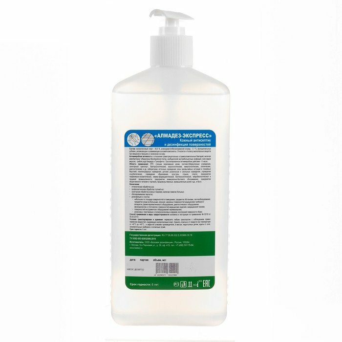Антисептик кожный "Алмадез-Экспресс", дезинфекция поверхностей, с насос дозатором, 1 л