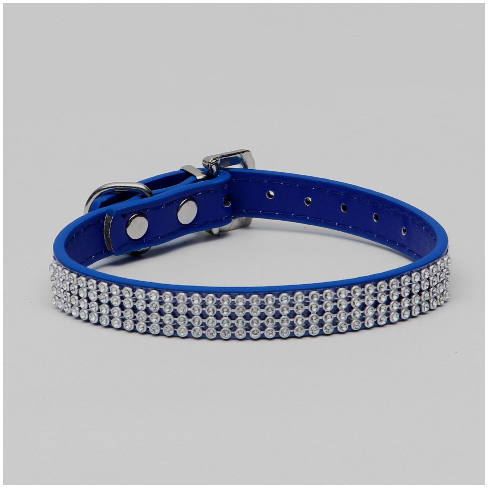 Ошейник со стразами в 4 ряда и стразы на пряжке, 38 х 1,5 см, ОШ 26-33, синий