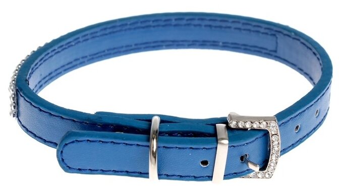Пижон Ошейник со стразами в 4 ряда и стразы на пряжке, 40 х 1,5 см, синий информация: