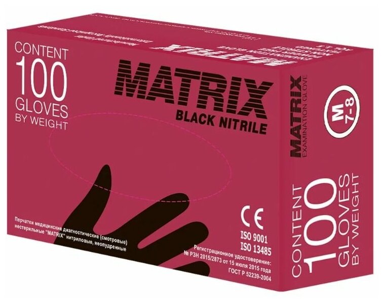 Перчатки нитриловые MATRIX Black Nitrile, цвет: черный, размер: S, 100 шт. (50 пар), 7 грамм нитрила - пара
