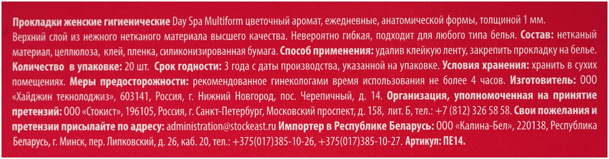 Прокладки женские ежедневные Day Spa Мультиформ Аромат лилии 20 штук информация: