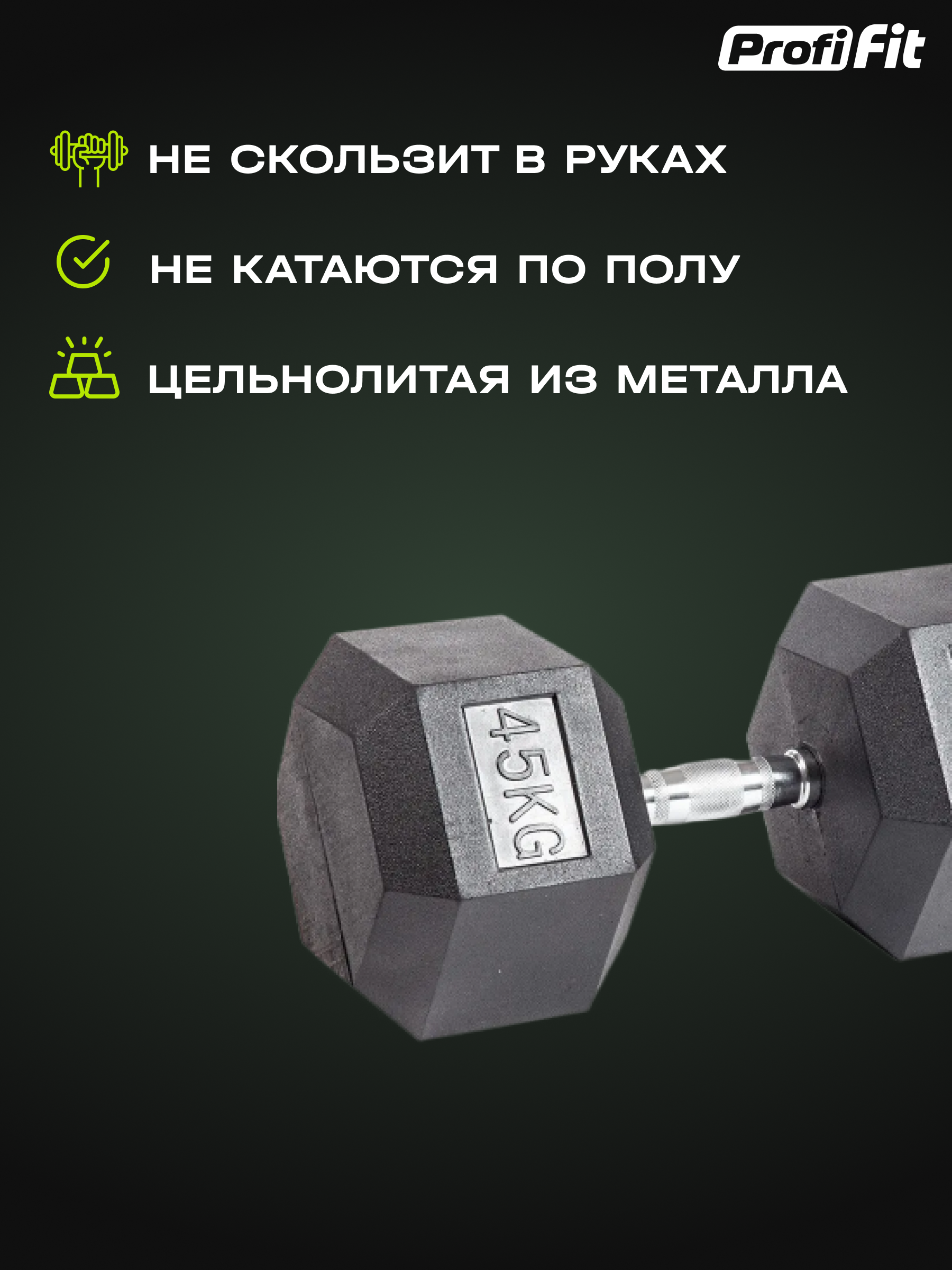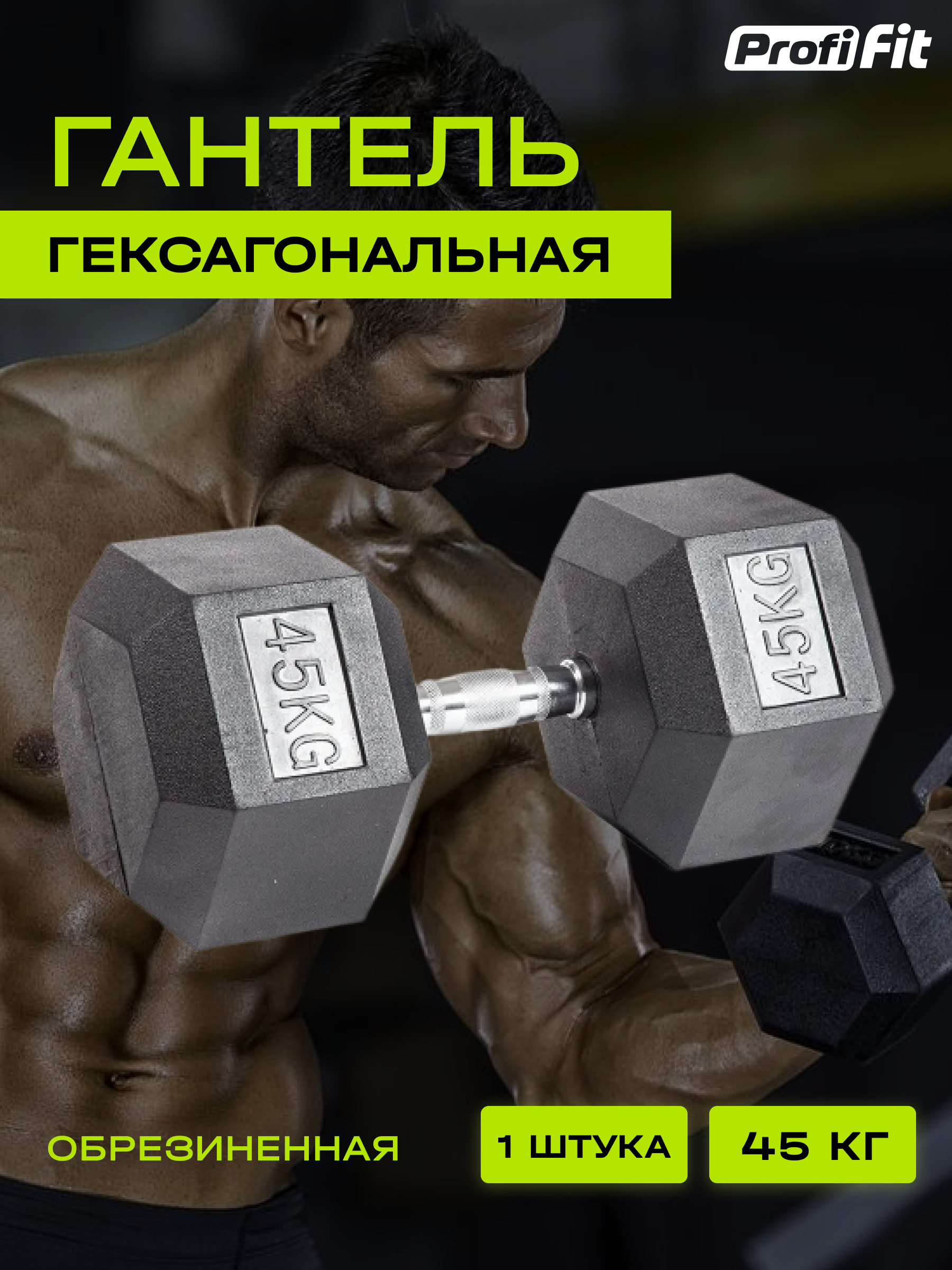 Гантель гексагональная обрезиненная (45 кг), Profi-Fit информация: