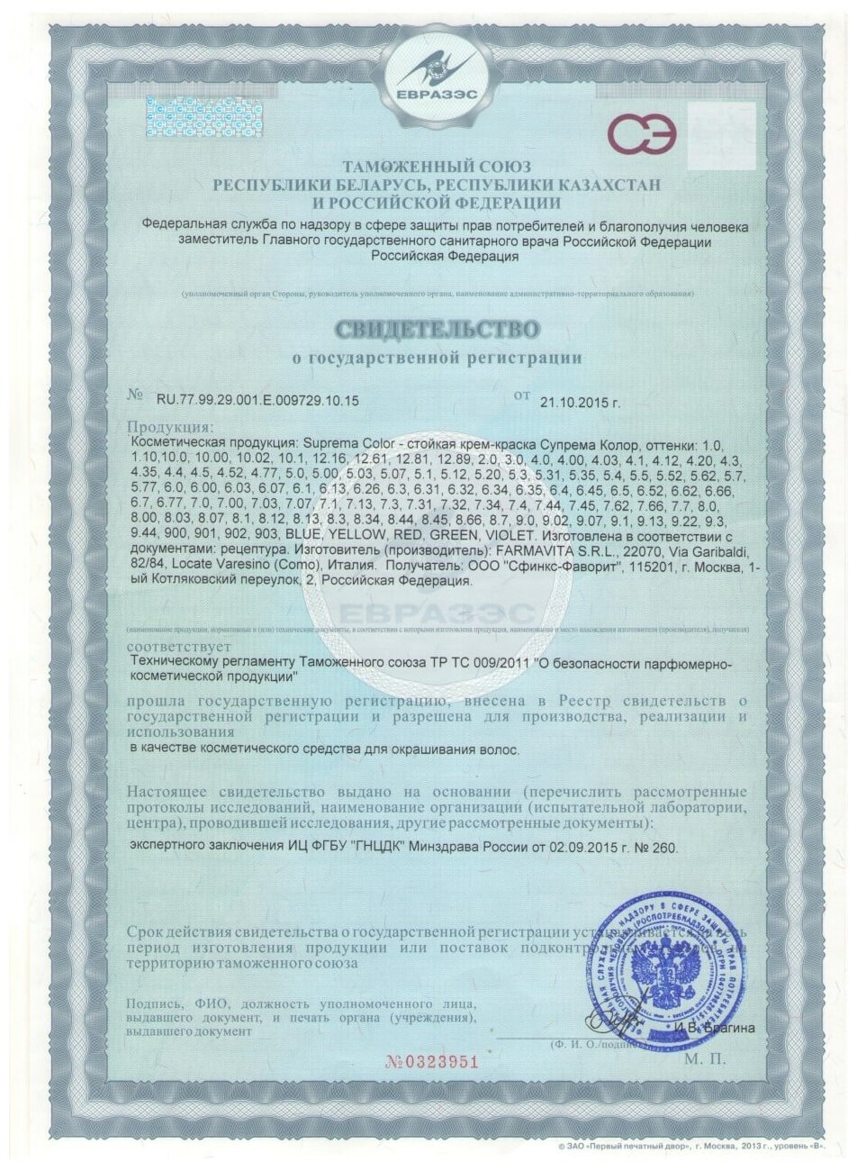 Farmavita Краска-крем для волос Suprema Color 10.0 Платиновый блондин информация:
