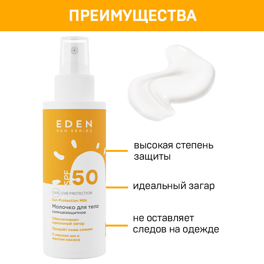 10 цен на Солнцезащитное молочко SPF 50 EDEN Sun Series 150 мл