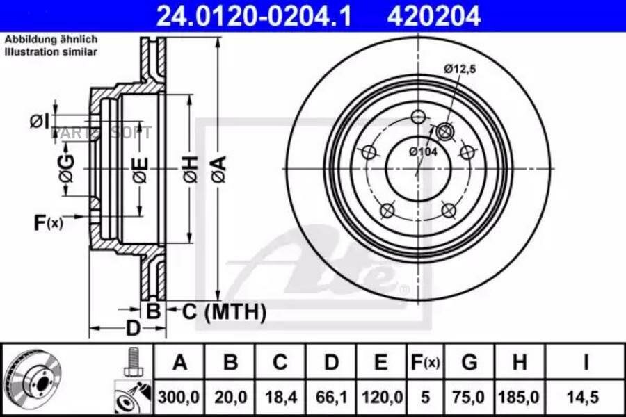 ATE 24.0120-0204.1 Диск тормозной задн, BMW: 1 123 d/130 i 04-12, 1 123 d/130 i 03-12, 3 320 d xDrive/320 si/320 xd/325 i xDrive/325 xi 05-11, 3 Touring 316 i/318 d/318 i/320 d/320 d 2шт