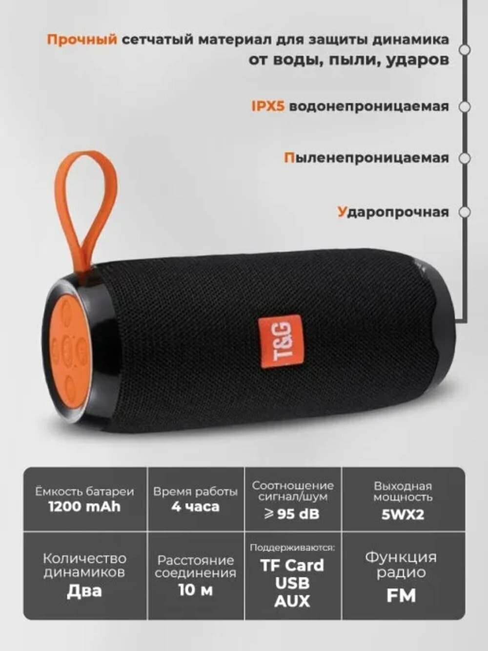 Портативная акустика T&G TG-106, 10 Вт, черный информация: