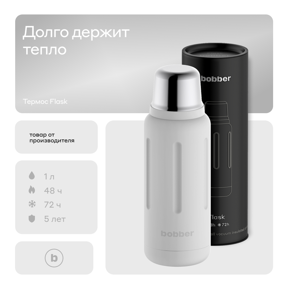 Термос Bobber Flask-1000, 1л, белый/серебристый (FLASK-1000/WHI)