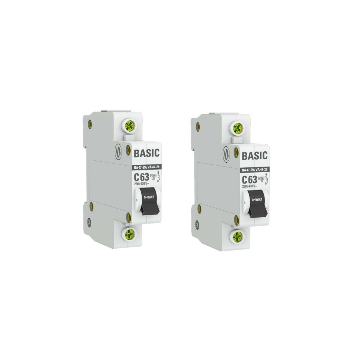 10 цен на Авт. выключатель 1P 63А (C) 4,5кА ВА 47-29 Basic 2шт.