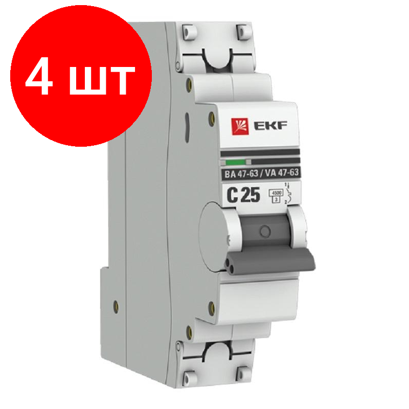 Автоматический выключатель EKF 1P 25А (C) 4,5kA ВА 47-63 EKF PROxima 4 штуки информация: