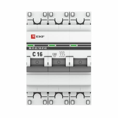 Выключатель автоматический EKF mcb4763-3-16C-pro 16A тип C 4.5kA AC 3П 400В 3мод белый (упак.:1шт)