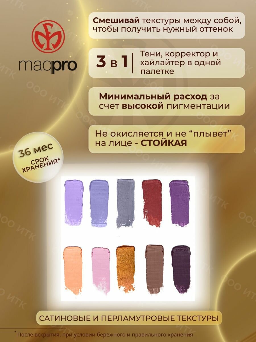 Тени кремовые в палитре 10 цветов АК106, MaqPro