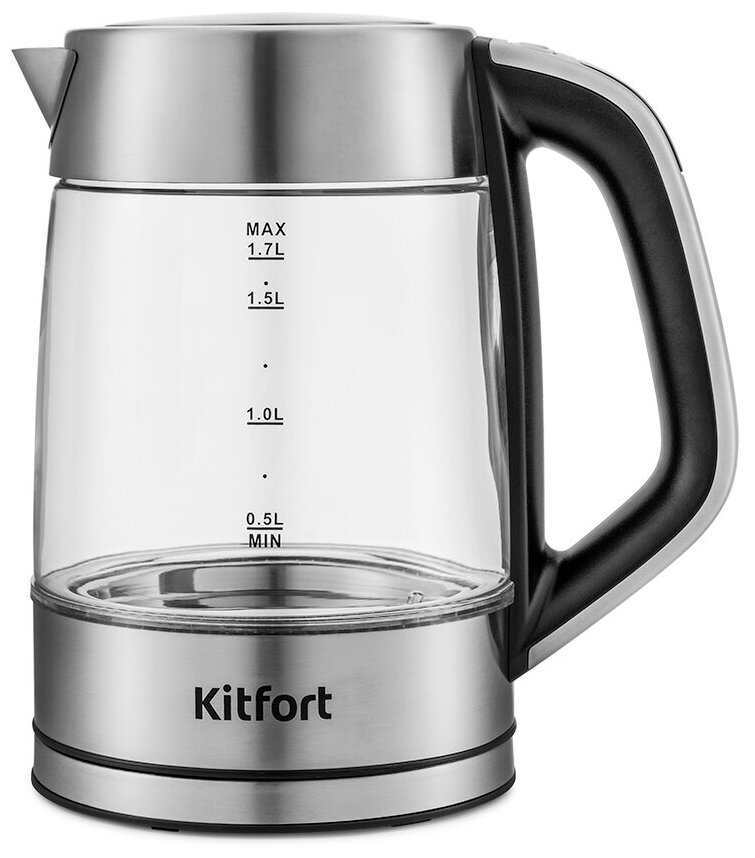 Чайник kitfort kt-6114 2200вт 1,7л стекло серебристый информация: