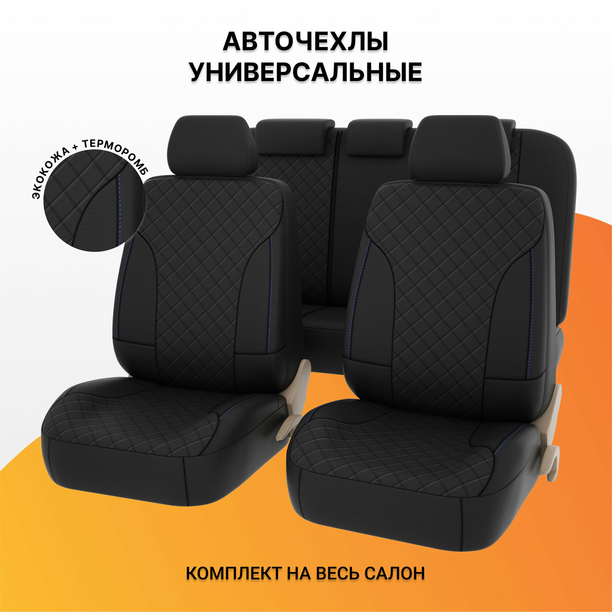 Чехлы универсальные в машину PSV King Next (Черный отстрочка синяя), терморомб + экокожа информация: