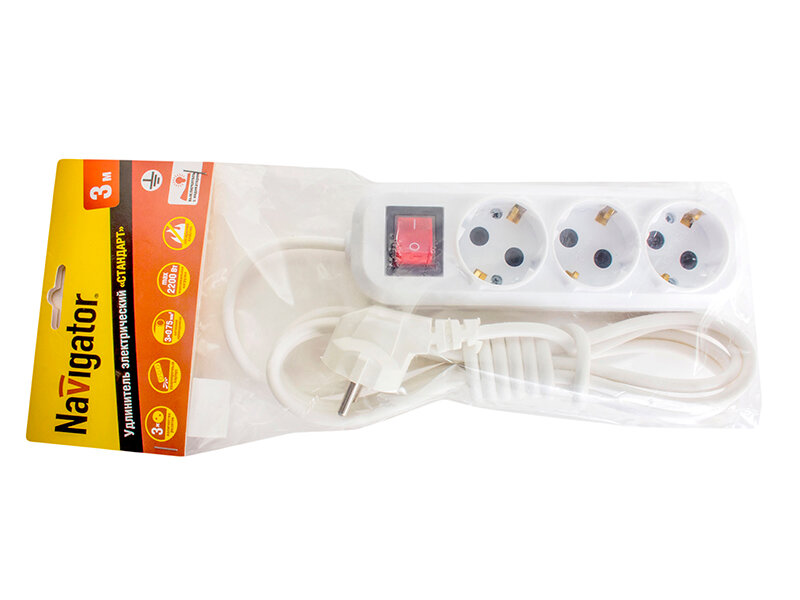 Удлинитель Navigator 71 455 NPE-S1-03-300-ESC-3x0.75, 3 розетки, 3 м, с/з, 10А / 2200 Вт белый