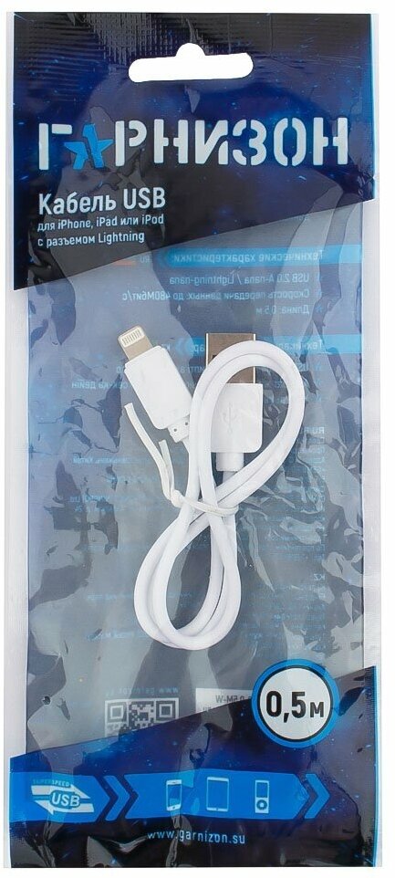 Отзывы на Аксессуар Гарнизон USB AM - Lightning 50cm White GCC-USB2-AP2-0.5M-W