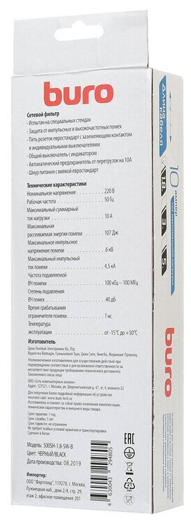 BURO 500SH-1.8-SW-В Сетевой фильтр 500SH-1.8-SW-B информация: